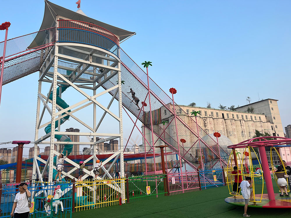 勇攀高峰是樂(lè)園的標(biāo)志性設(shè)備,由攀爬網(wǎng)和和滑滑梯組成,中間安裝玻璃站臺(tái),可以根據(jù)預(yù)算選擇高度和寬度,還可以和玻璃棧道結(jié)合做成樂(lè)園的地標(biāo)性游樂(lè)項(xiàng)目。是大型親子游樂(lè)園的必備項(xiàng)目。